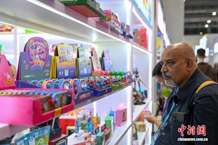 图为境中推销商正在广接会玩物铺区选择产物。中新社记者 旧骥旻 摄