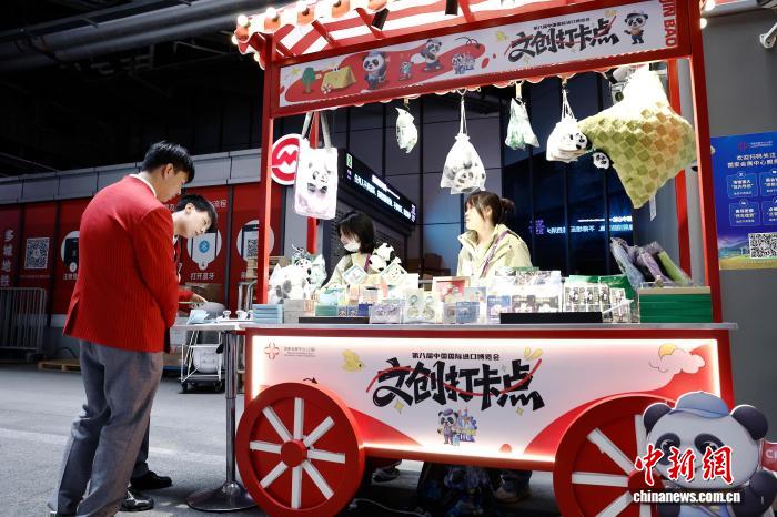 11月4日,意愿者正在文创挨卡面盖印。中新社记者 殷坐勤 摄